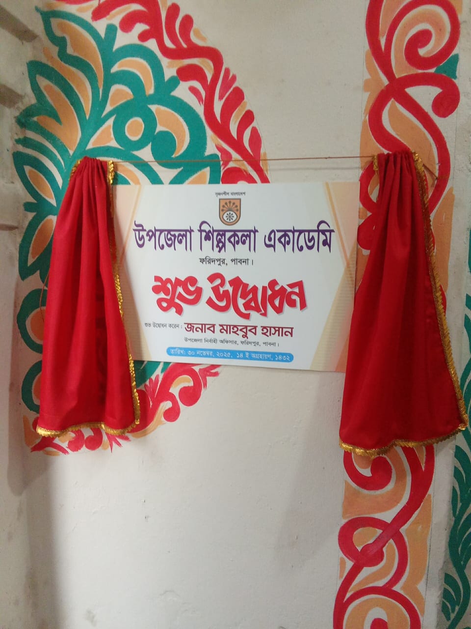 উপজেলা শিল্পকলা একাডেমি ফরিদপুর, পাবনা এর ১৪ ই অগ্রহায়ণ ১৪৩২ বঙ্গাব্দ ইংরেজী ৩০/১১/২০২৫ খ্রিঃ তারিখ রোজঃ রবিবার এ “শুভ উদ্বোধন” করেনঃ জনাব মাহবুব হাসান উপজেলা নির্বাহী অফিসার, ফরিদপুর, পাবনা।