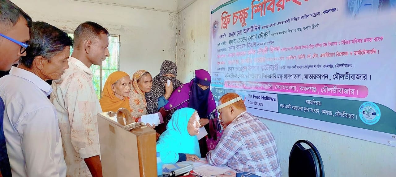 মৌলভীবাজারের কমলগঞ্জ উপজেলার সফাত আলী সিনিয়র ফাজিল মাদ্রাসা প্রাঙ্গণে নজরানা শিক্ষা ও স্বাস্থ্য কল্যাণ ট্রাস্টের আয়োজনে এবং বন্ধন সামাজিক সংগঠন এর সার্বিক সহযোগিতায় ফ্রি চক্ষু শিবির অনুষ্ঠিত হয়েছে।মঙ্গলবার (২৫ নভেম্বর) সকাল ১০ টা থেকে সফাত আলী সিনিয়র ফাজিল মাদ্রাসা প্রাঙ্গণে দিনব্যাপী এ চক্ষু শিবির অনুষ্ঠিত হয়। সফাত আলী সিনিয়র ফাজিল মাদ্রাসার প্রিন্সিপালমাওলানা মো. আলাউদ্দিনের সভাপতিত্বে অনুষ্ঠানে প্রধান অতিথি ছিলেন ট্রাস্টের সভাপতি রেহেনা বেগম চৌধুরী।