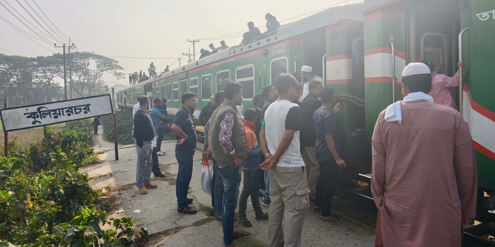 কিশোরগঞ্জ-৫ আসনে বিএনপির মনোনয়ন ঘোষণাকে কেন্দ্র করে রেলপথ অবরোধের ঘটনা ঘটেছে। এহসানুল হুদাকে বিএনপি থেকে মনোনয়ন দেওয়ার প্রতিবাদে ইকবাল সমর্থকরা কিশোরগঞ্জের সরারচর এলাকায় দুপুর ১টার দিকে রেলপথ অবরোধ করলে পুরো এলাকায় চরম উত্তেজনা ছড়িয়ে পড়ে।হঠাৎ এই অবরোধের ফলে রেল চলাচল সম্পূর্ণভাবে বন্ধ হয়ে যায়। এর সরাসরি প্রভাব পড়ে কিশোরগঞ্জ এক্সপ্রেস ট্রেনে। ট্রেনটি কুলিয়ারচর স্টেশনে দীর্ঘ সময় আটকে থাকায় শত শত যাত্রী চরম দুর্ভোগে পড়েন। বিশেষ করে নারী, শিশু ও বয়স্ক যাত্রীদের ভোগান্তি কয়েকগুণ বেড়ে যায়।দীর্ঘ সময় ট্রেন আটকে থাকায় যাত্রীরা উদ্বেগ ও উৎকণ্ঠার মধ্যে সময় কাটাতে বাধ্য হন। অনেক যাত্রী জরুরি কাজে গন্তব্যে পৌঁছাতে না পারার আশঙ্কা প্রকাশ করেন।