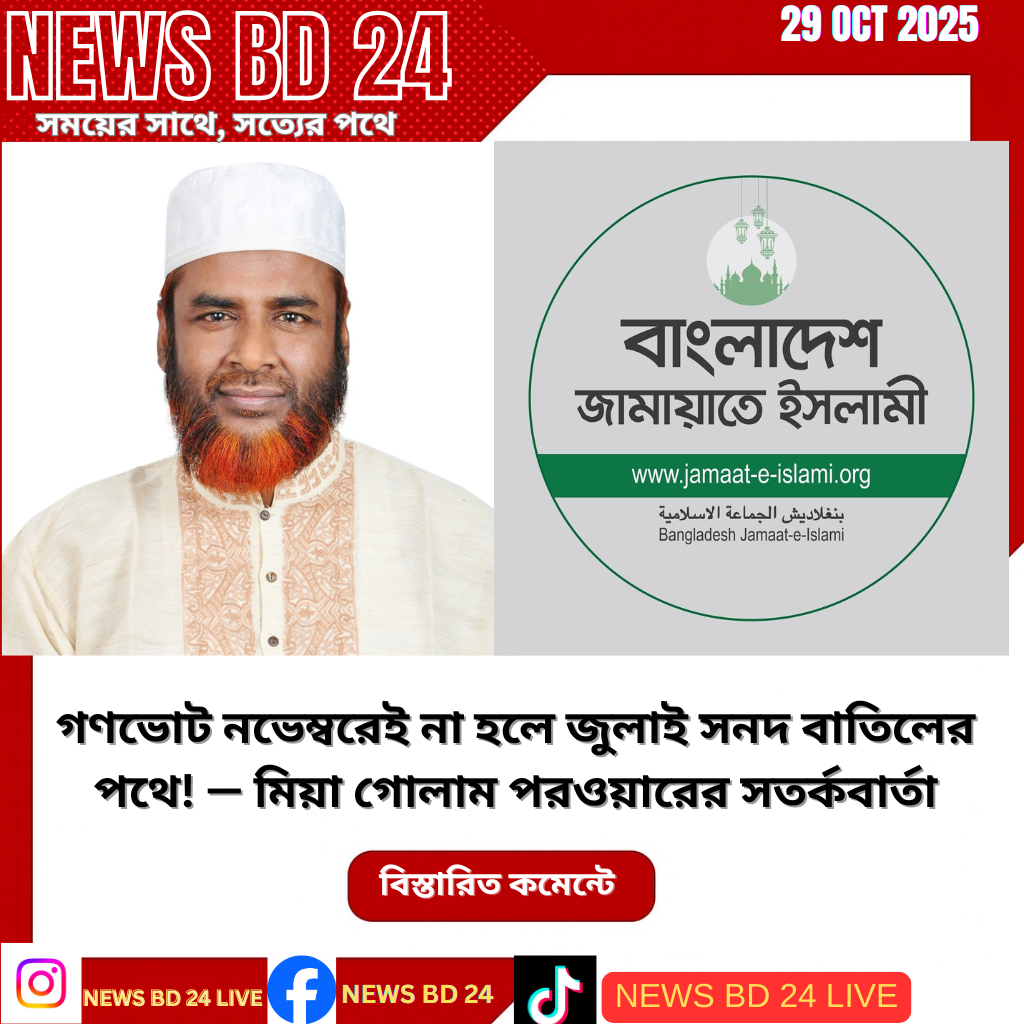 বাংলাদেশ জামায়াতে ইসলামীর সেক্রেটারি জেনারেল মিয়া গোলাম পরওয়ার বলেছেন, “গণভোট অবশ্যই জাতীয় নির্বাচনের পূর্বে নভেম্বরে হতে হবে। যারা জাতীয় নির্বাচনের সাথে একই দিনে গণভোটের দাবি করছেন এবং বলছেন এ নিয়ে কোনো আলোচনার সুযোগ নেই, তারা মূলত জুলাই জাতীয় সনদকে অকার্যকর করার অপরিণামদর্শী সর্বনাশা পথে হাঁটছেন।”তিনি আরও বলেন, জুলাই জাতীয় সনদ শুধু রাজনৈতিক ঐকমত্যের প্রতীক নয়, এটি দেশের ভবিষ্যৎ গণতান্ত্রিক দিকনির্দেশনাও নির্ধারণ করে দিয়েছে। সেই সনদের মূল ভিত্তি যদি উপেক্ষিত হয়, তবে এর ফলাফল হবে ভয়াবহ।রাজনৈতিক বিশ্লেষকরা মনে করছেন, জামায়াতে ইসলামীর এ বক্তব্য চলমান রাজনৈতিক উত্তাপের মধ্যে একটি নতুন দিক উন্মোচন করেছে। বিশেষ করে জাতীয় নির্বাচনের পূর্বে গণভোট আয়োজনের দাবি নিয়ে রাজনৈতিক অঙ্গনে নতুন বিতর্কের সৃষ্টি হয়েছে।তারা বলছেন, সরকারের পক্ষ থেকে যদি গণভোট ও জাতীয় নির্বাচন একই দিনে করার পরিকল্পনা থাকে, তবে তা বিরোধী দলের অংশগ্রহণ ও জনগণের আস্থা অর্জনে বাধা সৃষ্টি করতে পারে।রাজনীতিবিদ ও গবেষকদের মতে, “জুলাই সনদ” ছিল গণতান্ত্রিক প্রক্রিয়াকে প্রাতিষ্ঠানিক রূপ দেওয়ার একটি গুরুত্বপূর্ণ পদক্ষেপ। তাই এ বিষয়ে যেকোনো সিদ্ধান্তে সকল পক্ষের আলোচনার প্রয়োজন রয়েছে।