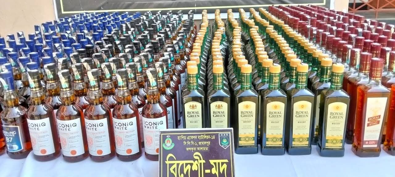 উপস্থিত সাক্ষীদের উপস্থিতিতে তাদেরকে জিজ্ঞাসাবাদ করলে ট্রাকে অবৈধ বিদেশী মদ থাকার কথা স্বীকার করে। তাদের দেওয়া তথ্যের ভিত্তিতে এবং দেখানো মতে ট্রাকের মধ্যে বিশেষ কৌশলে রাখা ১৩০১ বোতল বিদেশী মদ উদ্ধার করতঃ বহনে ব্যবহৃত ট্রাক, ক্রয়/বিক্রয়ের নগদ অর্থ ৯৬,৮০৫/- টাকা এবং ০৪টি মোবাইল ফোন জব্দ করতে সক্ষম হয়। উদ্ধারকৃত বিদেশী মদের আনুমানিক অবৈধ বাজার মূল্য ৭০,০০,০০০/-(সত্তর লক্ষ) টাকা।৩। গ্রেফতারকৃত মাদক কারবারিদের বিরুদ্ধে পরবর্তী আইনানুগ কার্যক্রমের জন্য শেরপুর জেলার সদর থানায় হস্তান্তর র্কাযক্রম প্রক্রিয়াধীন রয়েছে।