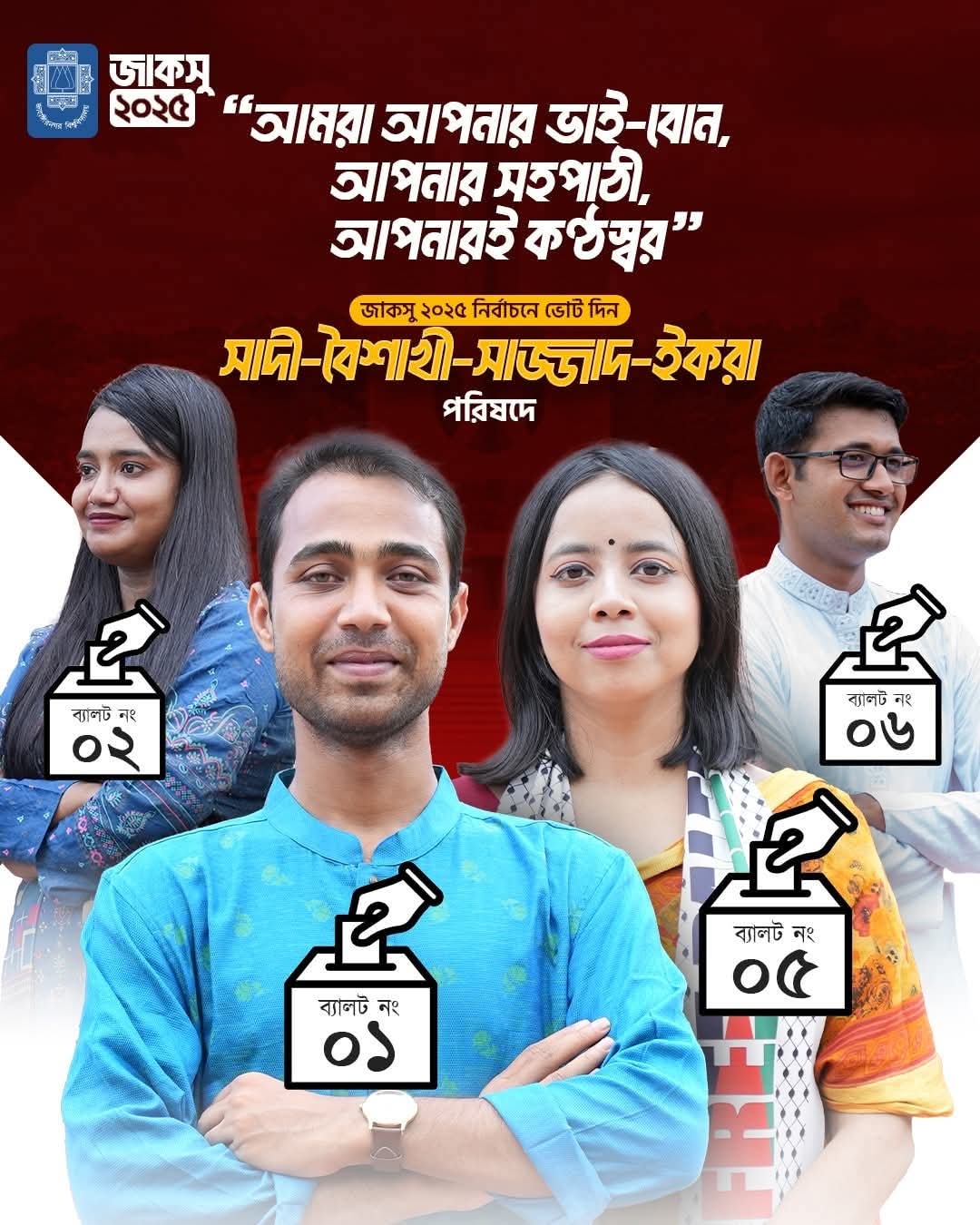 জাহাঙ্গীরনগর বিশ্ববিদ্যালয়ের কেন্দ্রীয় শিক্ষার্থী সংসদ (জাকসু) নির্বাচনে নাটকীয় পরিস্থিতি তৈরি হয়েছে ছাত্রদলের ভোট বর্জনের ঘোষণাকে ঘিরে। ভোটগ্রহণের শেষ ভাগে বৃহস্পতিবার (১১ সেপ্টেম্বর) বিকাল সাড়ে ৩টার দিকে ছাত্রদল প্যানেল আনুষ্ঠানিকভাবে নির্বাচন বর্জনের ঘোষণা দিলেও, শেষ পর্যন্ত প্রার্থীরা কিছুসংখ্যক ভোট পেয়েছেন।শনিবার (১৩ সেপ্টেম্বর) বিশ্ববিদ্যালয়ের সিনেট হলে প্রধান নির্বাচন কমিশনার আনুষ্ঠানিকভাবে ফলাফল ঘোষণা করেন। তাতে দেখা যায়, ভোট বর্জনের পরও ছাত্রদল প্যানেলের ভিপি প্রার্থী শেখ সাদী পেয়েছেন ৬৪৮ ভোট এবং জিএস প্রার্থী তানজিলা হোসাইন বৈশাখী পেয়েছেন ৯৪১ ভোট। তবে কেন্দ্রীয় কোনো পদে জয় পাননি ছাত্রদলের কেউ।অন্যদিকে, স্বতন্ত্র প্যানেলের প্রার্থী আব্দুর রশিদ জিতু ৩৩৩৪ ভোট পেয়ে ভিপি নির্বাচিত হয়েছেন। আর শিবির প্যানেলের মাজহারুল ইসলাম ৩৯৩০ ভোট পেয়ে জিএস পদে জয়লাভ করেন। সামগ্রিকভাবে ২৫ পদের মধ্যে ২০টি পদে জয় পেয়েছে শিবির প্যানেল।নির্বাচনের ফল ঘোষণার পর বিশ্ববিদ্যালয় ক্যাম্পাসে শিবির সমর্থকদের উচ্ছ্বাস লক্ষ্য করা যায়। অন্যদিকে ছাত্রদলীয় প্রার্থীদের ভোট বর্জন ও নিম্ন ভোটপ্রাপ্তি নিয়ে নানা আলোচনা চলছে।