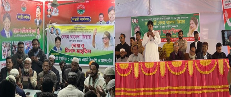 বাংলাদেশ জাতীয়তাবাদী দল (বিএনপি) এর চেয়ারপারসন ও সাবেক প্রধানমন্ত্রী বেগম খালেদা জিয়ার রোগমুক্তি এবং দীর্ঘায়ু কামনা করে দোহার ও নবাবগঞ্জে উপজেলায় তৃণমূলের নেতাকর্মীদের উদ্যোগে এক আবেগঘন বিশেষ দোয়া মাহফিল অনুষ্ঠিত হয়েছে।