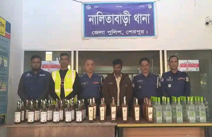 নালিতাবাড়ীতে ৭২ বোতল ভারতীয় মদসহ মাদককারবারি গ্রেফতার
