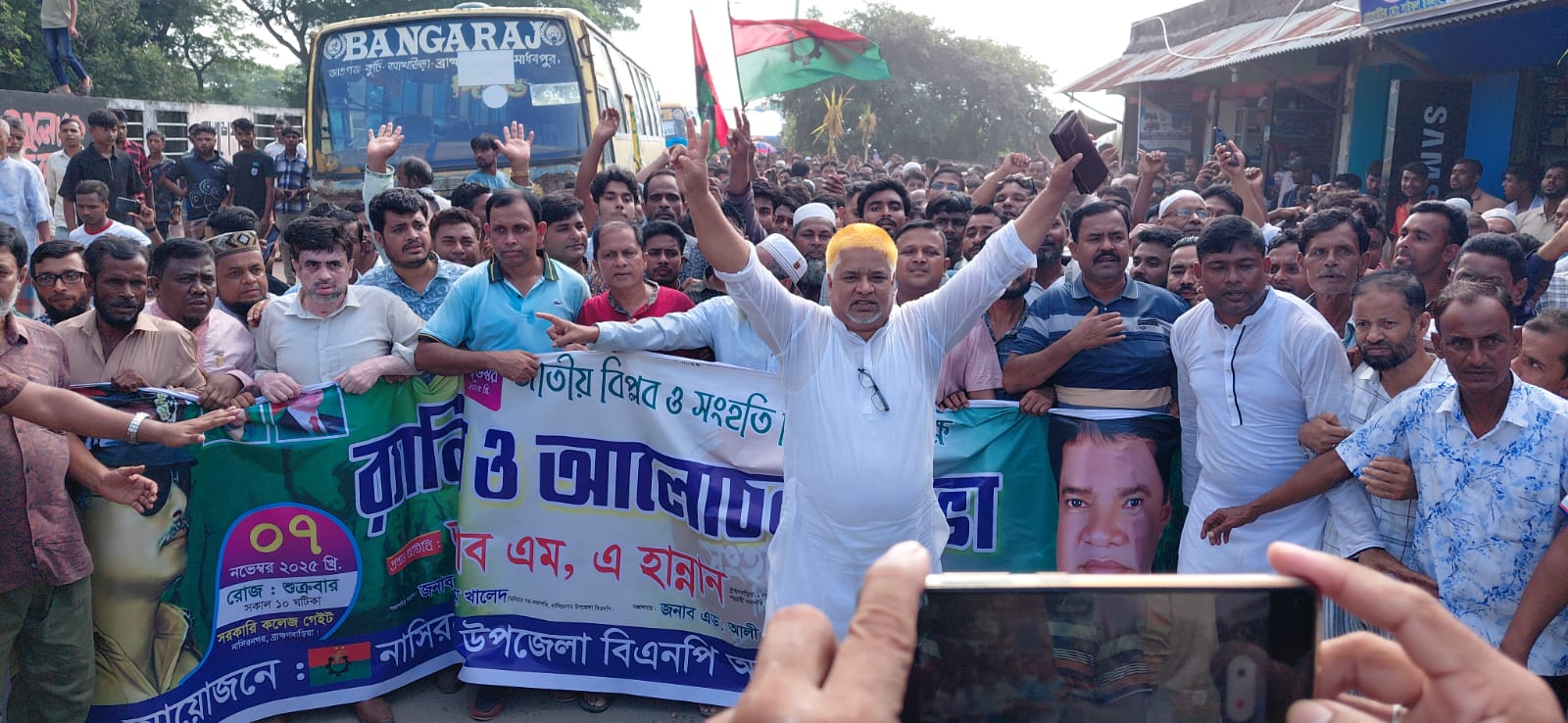 ব্রাহ্মণবাড়িয়ার নাসির নগরে যথাযোগ্য মর্যাদা ও উৎসবমুখর পরিবেশে পালিত হয়েছে ঐতিহাসিক জাতীয় বিপ্লব ও সংহতি দিবস।শুক্রবার সকাল ১১টায় উপজেলা বিএনপি ও অঙ্গসংগঠনের উদ্যোগে এক বর্ণাঢ্য র্যালি ও আলোচনা সভার আয়োজন করা হয়।অনুষ্ঠানের শুরুতে বিএনপি মনোনীত প্রার্থী ও উপজেলা বিএনপির সভাপতি এম এ হান্নানের নেতৃত্বে বিশাল র্যালিটি কলেজ মোড় থেকে শুরু হয়ে উপজেলার প্রধান প্রধান সড়ক প্রদক্ষিণ শেষে পুনরায় কলেজ মোড়ে এসে শেষ হয়।র্যালি শেষে সংক্ষিপ্ত আলোচনা সভায় সভাপতিত্ব করেন উপজেলা বিএনপির সিনিয়র সহ-সভাপতি এম এ খালেদ, সঞ্চালনায় ছিলেন এডভোকেট আলী আজম চৌধুরী।সভায় প্রধান অতিথি হিসেবে বক্তব্য রাখেন বিএনপি মনোনীত প্রার্থী এম এ হান্নান।বিশেষ অতিথি হিসেবে বক্তব্য রাখেন উপজেলা বিএনপির সাবেক সদস্য সচিব আজিজুর রহমান চৌধুরী, নাসিরনগর সদর ইউনিয়ন বিএনপির সভাপতি আবু সারওয়ার, যুবদলের যুগ্ম আহ্বায়ক জামাল আহাম্মেদ, সদস্য সচিব মাসুদ চৌধুরী, ছাত্রদলের সাবেক সদস্য সচিব পনি চৌধুরী, কলেজ ছাত্রদলের সাবেক সদস্য সচিব খাইরুল আলম রনি, স্বেচ্ছাসেবক দলের সদস্য সচিব নজরুল ইসলাম, শ্রমিক দলের সাবেক সাধারণ সম্পাদক ইমরানসহ বিভিন্ন অঙ্গ ও সহযোগী সংগঠনের নেতৃবৃন্দ।বক্তারা বলেন,“১৯৭৫ সালের ৭ নভেম্বর সিপাহি-জনতার ঐতিহাসিক বিপ্লব দেশের রাজনীতির মোড় ঘুরিয়ে দিয়েছিল। সেই বিপ্লবের মধ্য দিয়ে জাতি চরম নৈরাজ্য থেকে মুক্তি পায় এবং স্বাধীনতার ঘোষক শহীদ প্রেসিডেন্ট জিয়াউর রহমান বন্দিদশা থেকে মুক্ত হন।”বিএনপি ও সমমনা রাজনৈতিক দলগুলো প্রতিবছরই এই দিনটি “জাতীয় বিপ্লব ও সংহতি দিবস” হিসেবে পালন করে আসছে। এবছরও দিবসটি উপলক্ষে বিএনপি কেন্দ্রীয়ভাবে ১০ দিনের কর্মসূচি ঘোষণা করেছে।এ উপলক্ষে দলটির ভারপ্রাপ্ত চেয়ারম্যান তারেক রহমান ও মহাসচিব মির্জা ফখরুল ইসলাম আলমগীর পৃথক বাণী দিয়েছেন।