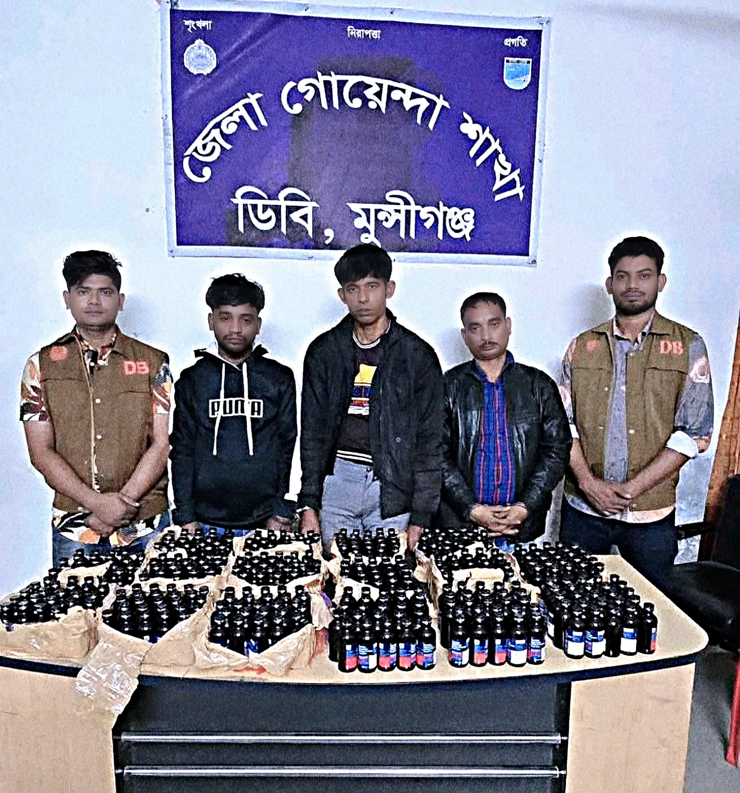 পদ্মা সেতু (উত্তর) এলাকায় ডিবি পুলিশের অভিযানে ৪০০ বোতল ফেনসিডিল উদ্ধার, গ্রেফতার ৩
