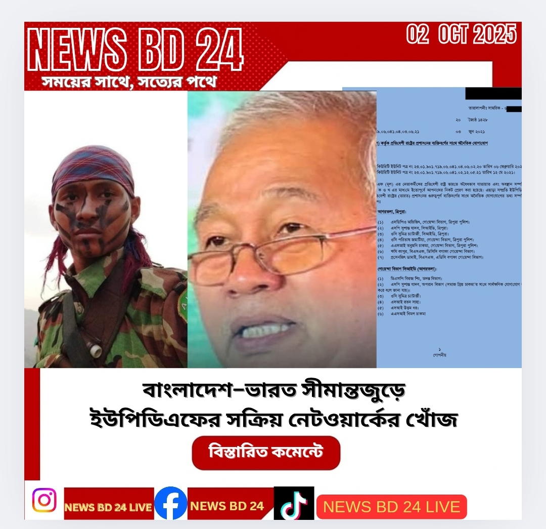 বাংলাদেশ–ভারত সীমান্তজুড়ে ইউপিডিএফের সক্রিয় নেটওয়ার্কের খোঁজ