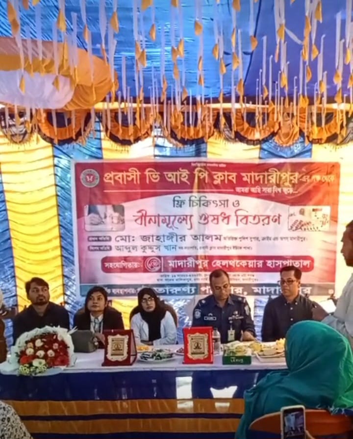 মাদারীপুরের কালিকাপুরে প্রবাসী ভি আই পি ক্লাবের উদ্যোগে ফ্রী মেডিকেল ক্যাম্প
