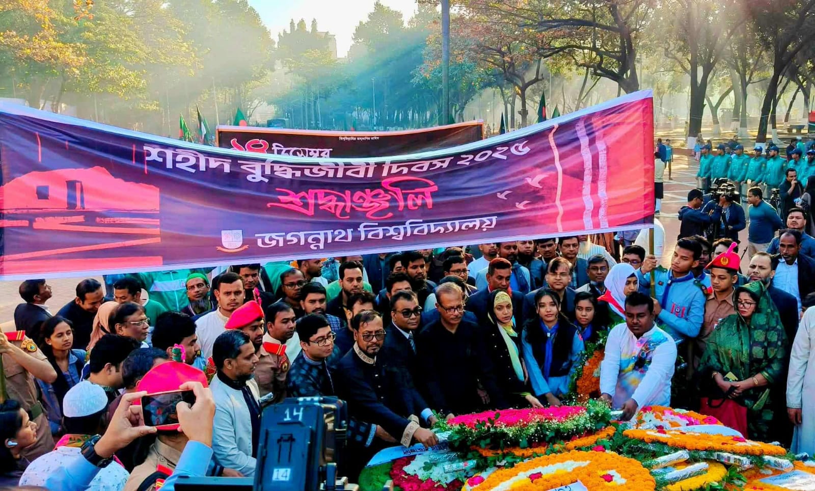 এর আগে, এদিন সকাল সাড়ে ৭টার দিকে বুদ্ধিজীবী কবরস্থানে জগন্নাথ বিশ্ববিদ্যালয়ের উপাচার্যের পক্ষ থেকে শ্রদ্ধাঞ্জলি দেওয়া হয়। এসময় বিশ্ববিদ্যালয়ের কোষাধ্যক্ষ অধ্যাপক ড. সাবিনা শরমীন, প্রক্টর অধ্যাপক ড. তাজাম্মুল হক, শিক্ষক সমিতির সাধারণ সম্পাদক অধ্যাপক ড. রইছ উদ্দিন সহ বিভিন্ন বিভাগের শিক্ষক, সাংবাদিক, শিক্ষার্থী, কর্মকর্তা ও কর্মচারীরা উপস্থিত ছিলেন।
