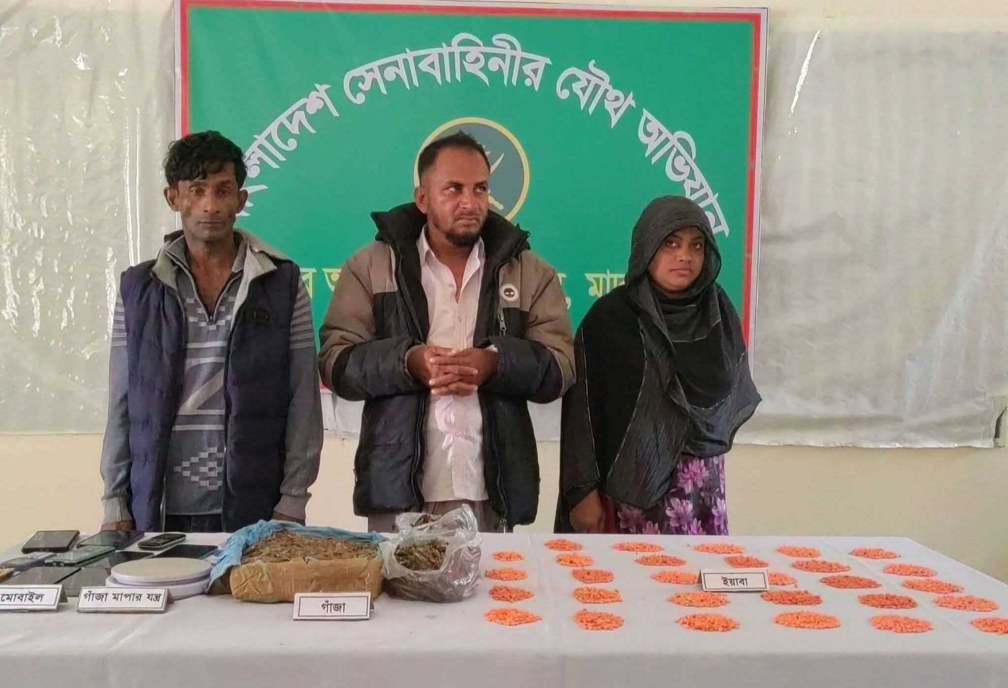 অভিযানে ৫ হাজার ৭০৭ পিস ইয়াবা ট্যাবলেট, ১ কেজি ৬৮০ গ্রাম গাঁজা, নগদ ২ হাজার ৬৫০ টাকা এবং ৯টি মোবাইল ফোন উদ্ধার করা হয়েছে।গ্রেপ্তার ব্যক্তিরা হলেন এনদাল শেখ (৫০), জীবনী বেগম (৩৮) ও সাগির শেখ (৪২)। আইনশৃঙ্খলা বাহিনী জানিয়েছে, প্রাথমিকভাবে তাদের মাদক কারবারের সঙ্গে জড়িত থাকার তথ্য পাওয়া গেছে।