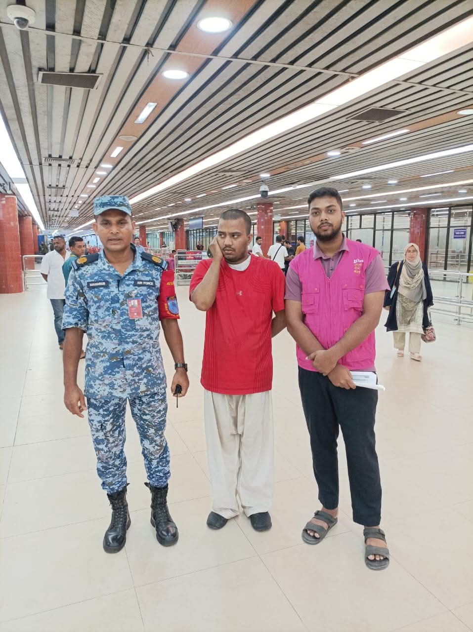 সুদূর সৌদি আরব থেকে দেশে ফেরার পরই এক করুণ দৃশ্যের অবতারণা হলো হযরত শাহজালাল আন্তর্জাতিক বিমানবন্দরে। গতকাল, বুধবার (দিনটি উল্লেখ না করলে ভালো, তাই “গতকাল” লেখা হলো) দিবাগত রাত ১টা ৩৫ মিনিটে সৌদি এয়ারলাইনসের (SV 804) একটি ফ্লাইটে ঢাকায় পৌঁছান আনুমানিক ৩০ বছর বয়সী এক প্রবাসী কর্মী। তাঁর বোর্ডিং পাসে নাম লেখা ছিল ‘সালেহ চৌধুরী’।বিমানবন্দরের ভেতরে তাঁর লক্ষ্যহীন ও বিভ্রান্তিপূর্ণ হাঁটাচলা দেখে তাঁকে চিহ্নিত করেন সিভিল অ্যাভিয়েশন সিকিউরিটি সদস্যরা। প্রাথমিক জিজ্ঞাসাবাদে তাঁর মানসিক অসুস্থতা স্পষ্ট হয়ে ওঠে। তিনি নিজের নামও ঠিকভাবে বলতে পারছিলেন না, একেকবার একেক নাম বলছিলেন। তাঁর কাছে কোনো পাসপোর্ট বা অন্য কোনো গুরুত্বপূর্ণ কাগজপত্রও পাওয়া যায়নি।মানবিক দিক বিবেচনা করে এবং নিরা’প’দ হস্তান্তরের উদ্দেশ্যে আজ সকালে সালেহ চৌধুরীকে ব্র্যাক মাইগ্রেশান ওয়েলফেয়ার সেন্টারে পাঠানো হয়েছে। তিনি বর্তমানে ঢাকার আশকোনায় অবস্থিত ব্র্যাক লার্নিং সেন্টারে ব্র্যাকের তত্ত্বাবধানে আছেন।ব্র্যাক মাইগ্রেশন ওয়েলফেয়ার সেন্টারের পক্ষ থেকে তাঁর পরিবারের জরুরি সন্ধান চেয়ে গণমাধ্যমের মাধ্যমে সহযোগিতা কামনা করা হয়েছে।যদি কোনো ব্যক্তি ‘সালেহ চৌধুরী’ সম্পর্কে কোনো তথ্য জেনে থাকেন, অথবা তাঁর পরিবারের সঙ্গে যোগাযোগ করতে সক্ষম হন, তবে দ্রুত নিচের নাম্বারে যোগাযোগ করার জন্য আন্তরিক অনুরোধ জানানো হয়েছে:যোগাযোগের জন্য: আল আমিন নয়ন, ব্র্যাক মাইগ্রেশন ওয়েলফেয়ার সেন্টার। মোবাইল: ০১৭১২১৯৭৮৫৪।প্রবাসফেরত এই মানসিক অসুস্থ কর্মীকে দ্রুত তাঁর পরিবারের কাছে পৌঁছে দিতে সকলের সহযোগিতা একান্ত কাম্য।সোর্স: ব্র্যাক মাইগ্রেশান ওয়েলফেয়ার সেন্টার ও সিভিল অ্যাভিয়েশন সিকিউরিটি সূত্র।