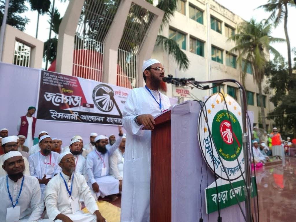 ইসলামী আন্দোলন বাংলাদেশ বগুড়া জেলা শাখার উদ্যোগে অনুষ্ঠিত হলো এক বিশাল গণসমাবেশ। সমাবেশে বক্তারা জুলাই সনদের আইনি ভিত্তি নিশ্চিতকরণ, অনুপাতিক প্রতিনিধিত্ব (PR) পদ্ধতিতে জাতীয় নির্বাচন আয়োজনসহ পাঁচ দফা দাবি উপস্থাপন করেন।প্রধান অতিথি হিসেবে উপস্থিত ছিলেন ইসলামী আন্দোলন বাংলাদেশের সিনিয়র নায়েবে আমীর মুফতী সৈয়দ মুহাম্মাদ ফয়জুল করীম (শায়েখে চরমোনাই)। তিনি বলেন, “দেশে ন্যায়বিচার, সুশাসন ও গণতান্ত্রিক অধিকার প্রতিষ্ঠার জন্য জনগণের রায়কে সম্মান করতে হবে। জনগণ এখন পরিবর্তনের পথে একতাবদ্ধ।”সমাবেশে আরও বক্তব্য রাখেন ইসলামী আন্দোলন বাংলাদেশের কেন্দ্রীয় ও জেলা পর্যায়ের নেতৃবৃন্দ। বক্তারা অভিযোগ করেন, বর্তমান রাজনৈতিক প্রক্রিয়ায় জনআকাঙ্ক্ষা প্রতিফলিত হচ্ছে না। তাই জনগণের মতামতকে প্রতিফলিত করতে PR পদ্ধতিতে নির্বাচন এবং জুলাই সনদের বাস্তবায়ন জরুরি।গণসমাবেশে হাজারো জনতার উপস্থিতি বগুড়াকে উত্তাল করে তোলে। বক্তারা ৫ দফা দাবি মেনে না নিলে দেশব্যাপী কঠোর আন্দোলনের হুঁশিয়ারি দেন।