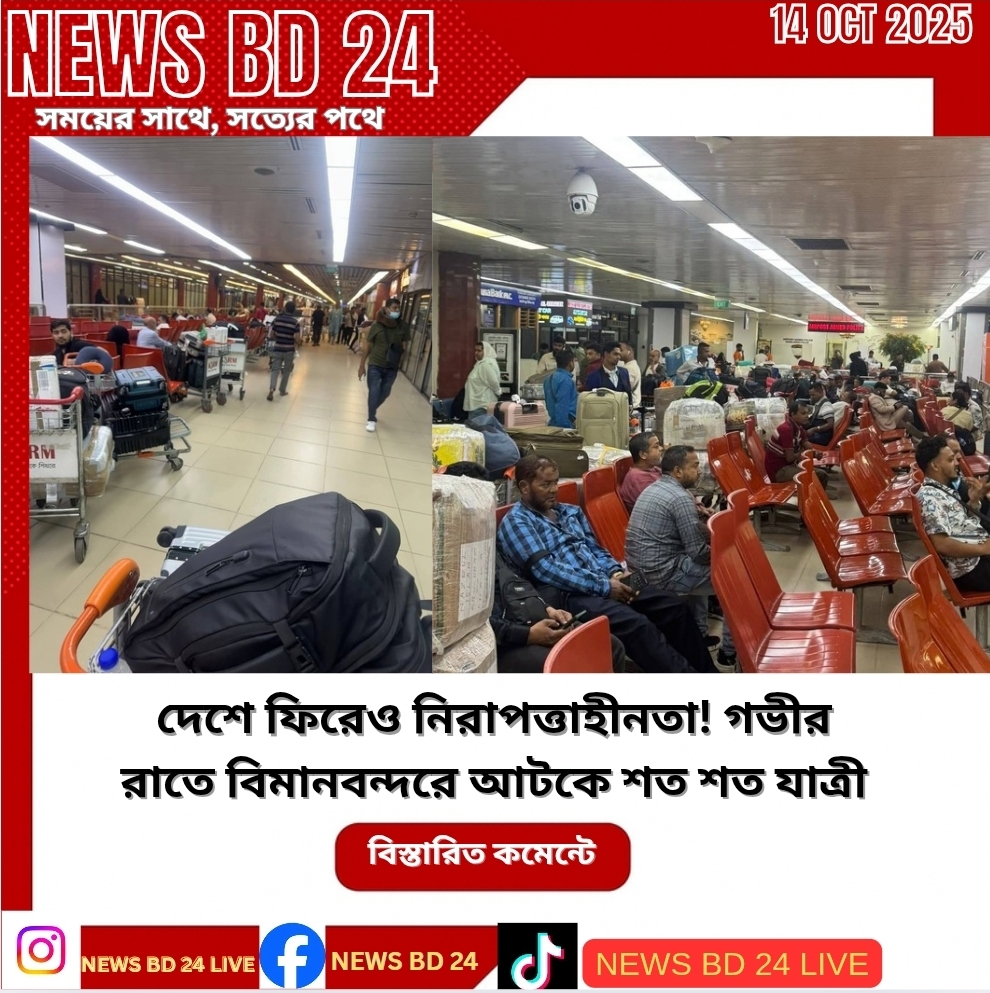আজ ভোররাতে ঢাকার হযরত শাহজালাল আন্তর্জাতিক বিমানবন্দরে নামা শত শত যাত্রীকে রাত কাটাতে হয়েছে টার্মিনালের ঠান্ডা চেয়ারে।রাত ২টা ৩০ মিনিটে ফ্লাইট অবতরণের পর ইমিগ্রেশন ও লাগেজ প্রক্রিয়া শেষ হতে প্রায় ৩টা ৩০ মিনিট বেজে যায়। কিন্তু নিরাপত্তাজনিত কারণে গভীর রাতে কেউই বিমানবন্দর থেকে বের হওয়ার সাহস পাননি।ঢাকা শহরসহ আশপাশের এলাকায় অনিরাপত্তার আশঙ্কায় অনেকেই ট্যাক্সি বা প্রাইভেট কার বুকিং বাতিল করেছেন। ফলে বিমানবন্দরের টার্মিনালে রাতভর বসে থাকতে হয়েছে যাত্রীদের।একজন যাত্রী জানান, “দেশে ফিরেও মনে হলো যেন নিরাপত্তাহীনতার শহরে নেমেছি। কোথাও কোনো নিশ্চিন্ততা নেই।”আরেক যাত্রী বলেন, “দীর্ঘ ফ্লাইট শেষে দেশে ফিরে একটু বিশ্রাম নেব—এই আশাতেই ছিলাম, কিন্তু এখন এই অপেক্ষা আরও কষ্টদায়ক।”বিমানবন্দরের এক কর্মকর্তা জানান, যাত্রীদের নিরাপত্তার বিষয়টি মাথায় রেখেই বাইরে চলাচল নিরুৎসাহিত করা হয়েছে। পরিস্থিতি স্থিতিশীল না হওয়া পর্যন্ত সবাইকে সতর্ক থাকার পরামর্শ দেওয়া হয়েছে।দেশে ফেরার আগে যারা রাতের ফ্লাইট বেছে নেন, বিশেষজ্ঞরা তাদের এখন থেকে দিন বা সন্ধ্যার ফ্লাইটে যাত্রা করার পরামর্শ দিয়েছেন।