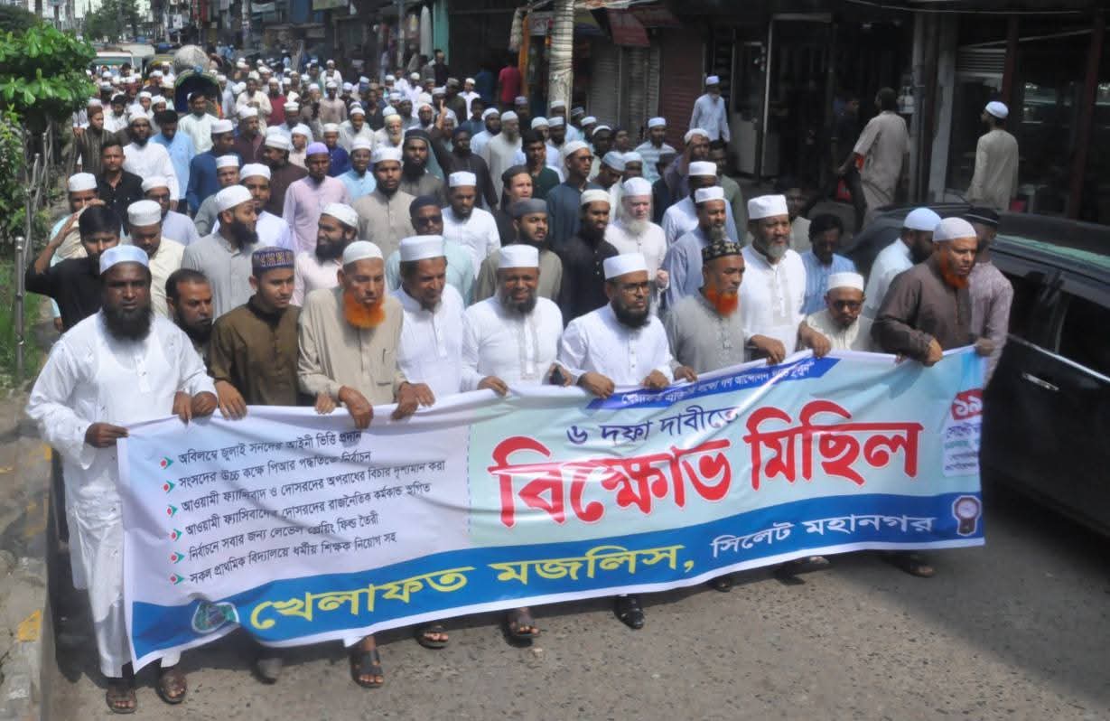 খেলাফত মজলিস ঘোষিত ছয় দফা দাবির অংশ হিসেবে দেশব্যাপী মহানগরীগুলোতে অনুষ্ঠিত হয়েছে বিক্ষোভ কর্মসূচি। এরই ধারাবাহিকতায় সিলেট মহানগর শাখার উদ্যোগে শুক্রবার দুপুরে নগরীর প্রধান প্রধান সড়কে বিক্ষোভ মিছিল অনুষ্ঠিত হয়।মিছিলে বক্তারা বলেন, খেলাফত মজলিসের ন্যায্য দাবিগুলো আদায়ের জন্য জনগণকে ঐক্যবদ্ধ হতে হবে।